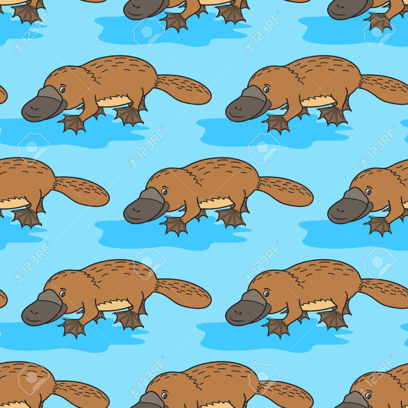 Ornithorynque Drole Animal Sauvage Australien Dessin Anime Heureux Illustration Vectorielle Pour Les Enfants Seamless Pattern Cute Character Sur Un Fond Bleu Impression Pour Le Textile Papier Scrapbooking Fonds D Ecran Clip Art Libres De